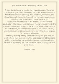Have your work reviewed by world-renowned art critics- This Week's Spotlight: Ana Milena Tamara by Tabish Khan